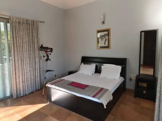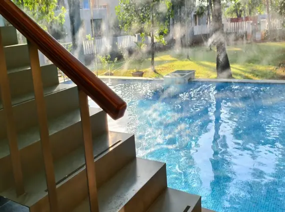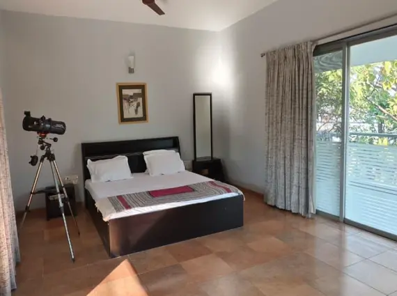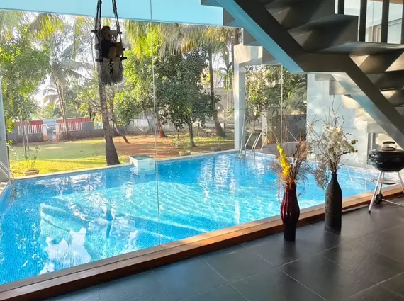 The lifestyle at this Gondhalpada villa is anchored by a private swimming pool — a feature that elevates it significantly above the standard Alibaug residential offering. The ground floor recreation room with its library, table tennis, and carrom board ensures entertainment and leisure are built into the very fabric of the home. Every bedroom’s full furnishing — including bathtubs, air conditioning, smart TVs, and refrigerators — means guests and family arrive to a hotel-standard experience without a single additional investment. Solar power and a dedicated generator backup ensure uninterrupted electricity, while the expansive outdoor sit-out provides a natural dining and socialising space framed by the lush Konkan landscape.