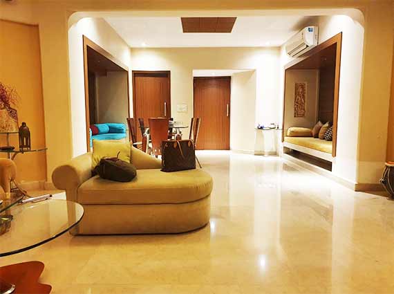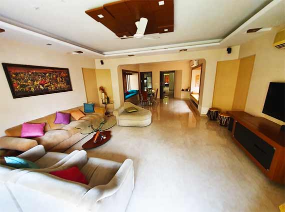 At Gupta and Sen, we offer a variety of properties and cozy homes to fit various requirements for our clients. One such property is this fully-furnished 4 BHK home in Flamingo apartments, Khar (W). Located on the 3rd floor, with a carpet area of 2,000 sq.ft., this space offers a warm, homely vibe the very moment one walks in. One of the first things that catch the eye of visitors is the spectacular living room and the spacious bedrooms.