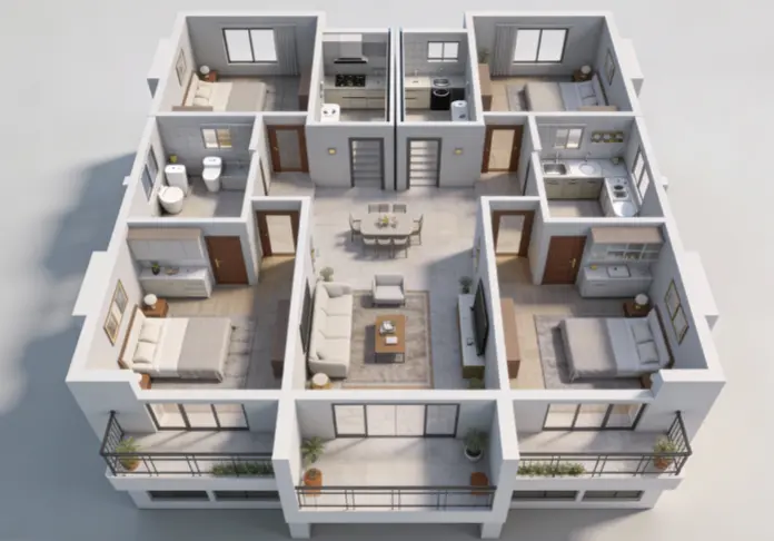 This 4.5 BHK Jodi Apartment is configured for large-family living, upgrades from smaller apartments, or buyers seeking a single expansive residence rather than fragmented spaces. The home is fully furnished, including modular kitchen fittings, wardrobes, beds, seating, lighting, air-conditioning, and essential appliances—allowing for immediate move-in or rental readiness. The layout prioritizes usable carpet area, defined living and dining zones, well-sized bedrooms, and practical storage without wasted circulation.