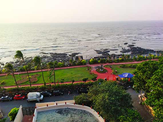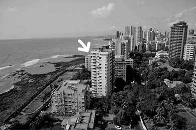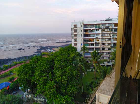 Check the photo below. Sudhakar Building has been marked with an arrow to give you an idea of it’s enviable seaside location.