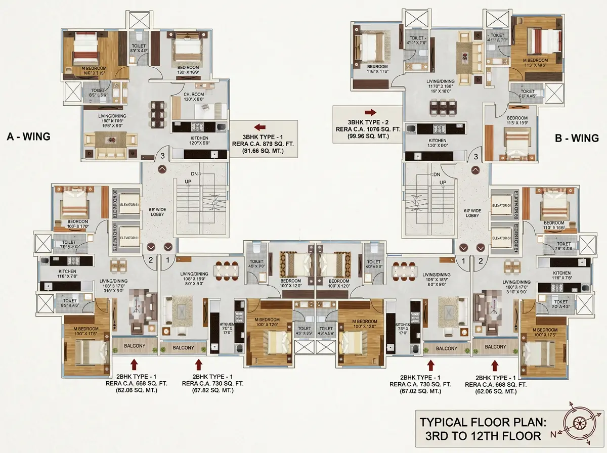 MICL Aaradhya Onepark offers expansive 3 BHK residences from 1,062 to 1,368 sq. ft. carpet area, and palatial 4 BHK homes spanning 1,619 to 2,494 sq. ft. — dimensions that position these firmly in ultra-luxury territory for the eastern suburbs. 5 BHK Duplex options and large Jodi configurations — 3+3 BHK and 4+4 BHK — are available for extended families and premium buyers seeking the largest footprints in the community. Pricing starts from ₹5 Cr onwards, reflecting the project’s premium positioning on a high-visibility 60 Feet Road frontage.