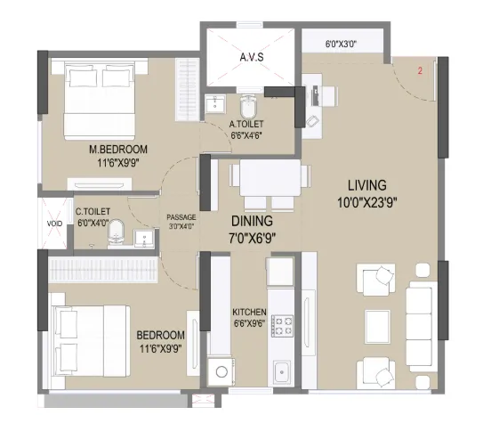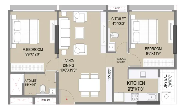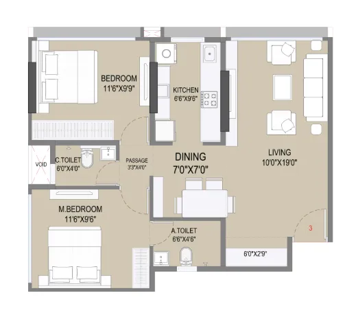 The 2 BHK homes at Awestrum Life are designed to deliver a perfect balance between comfort and efficiency. The apartments feature well-planned living and dining spaces that connect seamlessly with private balconies, allowing natural light and fresh air to flow throughout the home.