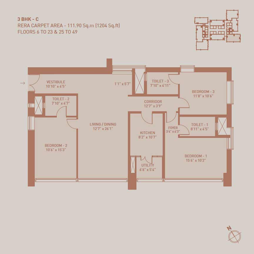 3 BHK 1,151 – 1,204 sq ft – 5.90 -7.04 Cr