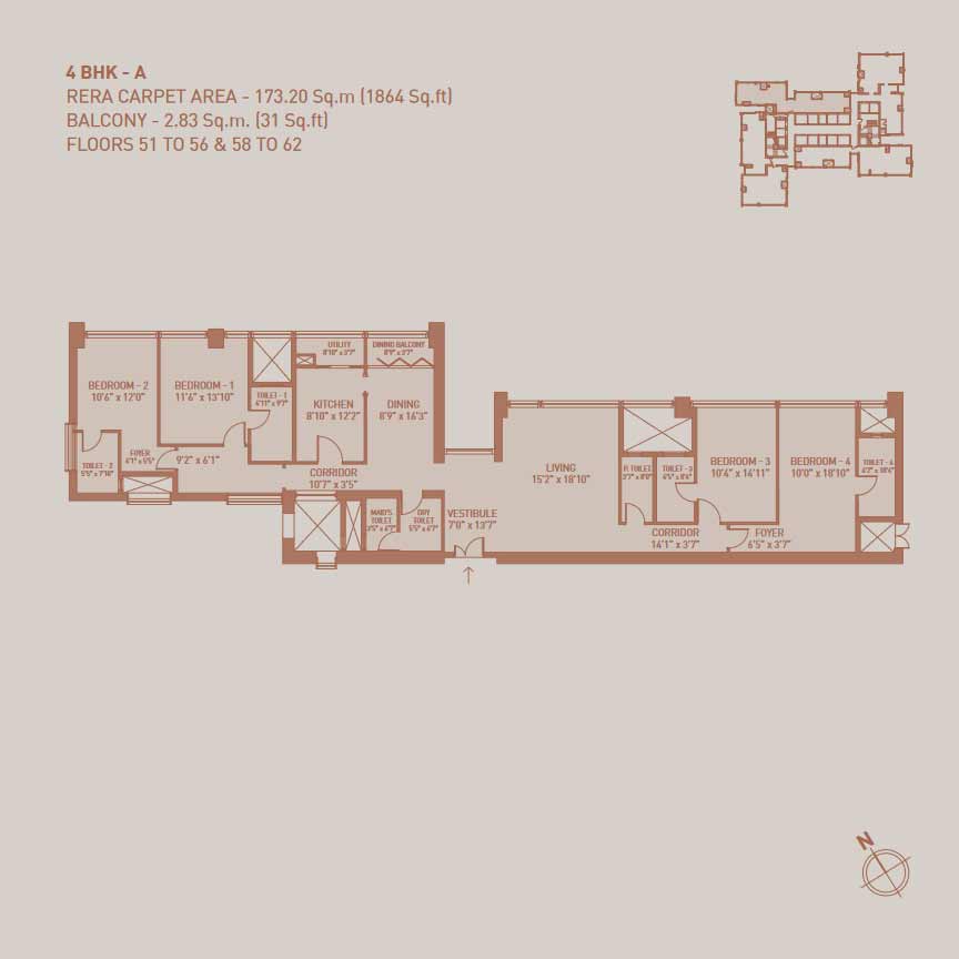 4 BHK + STAFF + STUDY 2,142 – 2,167 sq ft – 13.45 – 14.03 Cr