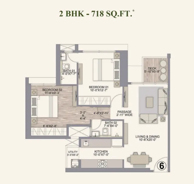 The 2 BHK homes are designed to maximise space efficiency while maintaining comfortable living environments. These apartments feature spacious living and dining areas, well-planned kitchens, and private bedrooms designed for relaxation.