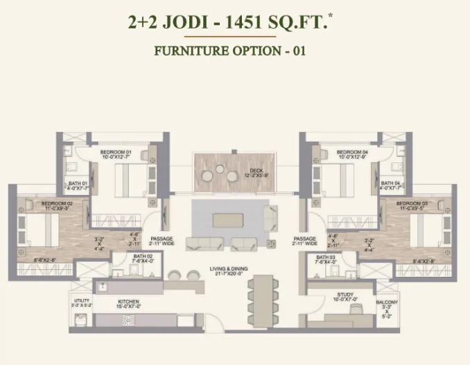 For homeowners seeking even larger spaces, Jodi apartments allow two units to be combined into one expansive residence. These homes can reach approximately 1450 sq.ft. in combined layout, offering large living areas, walk-in wardrobes, and additional living flexibility.