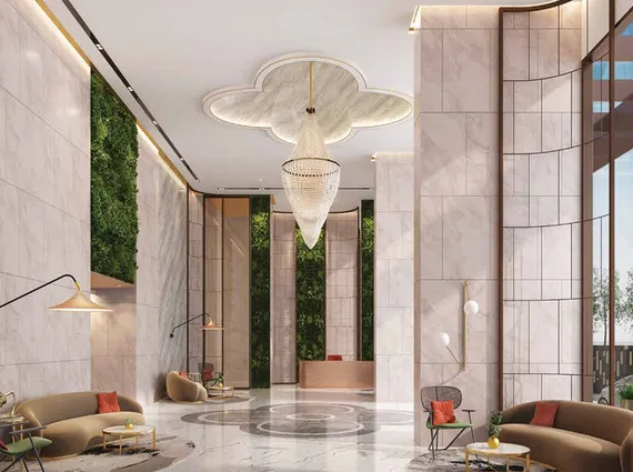 The entrance lobby and common areas have been designed with refined interiors that create a welcoming and elegant arrival experience for residents and visitors.