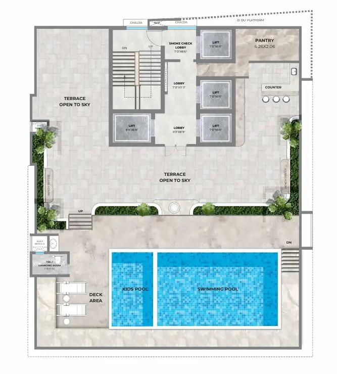• Sky Lounge & Sunset Deck – Perfect for parties or serene evenings