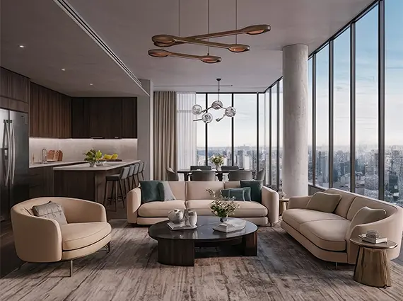 With 12 ft. floor-to-ceiling heights, 7 ft. wide palatial doors, full-length German-engineered windows, and 200 sq. ft. private sky decks, every home here is a villa in the sky – a world entirely your own.