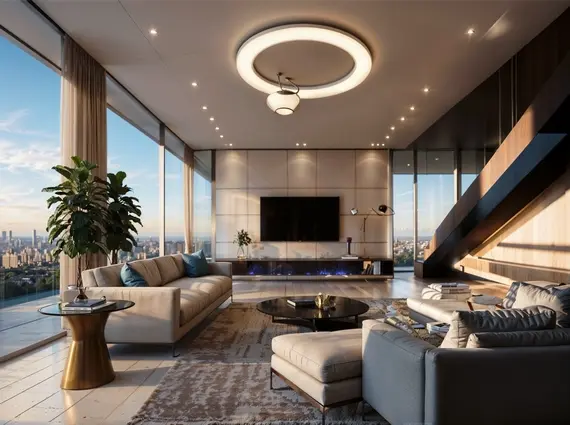 Automated car elevators, AI-enabled air-conditioned passenger lifts, VRV systems, and double-glazed heat-resistant windows complete a home designed for invisible orchestration of silence and comfort.