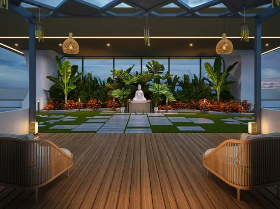 The lifestyle offering at DGS Sheetal Sky is positioned at sky-resort standards — with 75+ curated amenities spread across the dedicated 6th floor amenities deck and upper-level lifestyle zones. A lavish swimming pool with jacuzzi and steam room anchors the wellness offering, complemented by a state-of-the-art gymnasium and dedicated yoga lawn, dance studio, and meditation lounge. An observatory and stargazing deck crowns the building with a dramatic sky-level social destination, while a private theatre, gaming room, and business lounge serve the diverse leisure and professional needs of residents. A grand double-height entrance lobby, kids’ play area, banquet hall, zen garden, and home automation throughout each residence complete a lifestyle canvas that rivals Mumbai’s finest five-star residential addresses. Mechanical independent parking, rainwater harvesting, CCTV in all common areas, and advanced fire-fighting systems ensure safety and sustainability are built into every layer of the building.