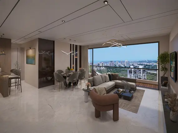 DGS Sheetal Sky offers a carefully structured range of 2 BHK, 3 BHK, and exclusive Jodi configurations — each designed around the philosophy of zero-wastage layouts, private sky decks, and panoramic city views. The 2 BHK residences span 741 sq. ft. of carpet area, priced at ₹2.89 Crores++ with an all-inclusive price of ₹3.40 Crores including 1 car park. The 3 BHK apartments offer 1,205 sq. ft. of carpet area at ₹4.79 Crores++, with an all-inclusive price of ₹5.45 Crores including 1 car park. For buyers seeking larger combined living formats, the 2+2 BHK Jodi at 1,482 sq. ft. is priced at ₹6.80 Crores all-inclusive with 2 car parks, while the ultra-premium 3+3 BHK Jodi at 2,411 sq. ft. is available at ₹10.88 Crores all-inclusive with 2 car parks. Every residence is Vastu-compliant and features a private balcony-deck that frames Lokhandwala’s iconic skyline with quiet authority. The pricing reflects a rate of ₹39,000+ per sq. ft. — a positioning consistent with the address and the lifestyle offering it delivers.