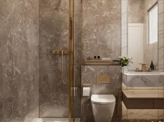 Inside, common areas are finished with understated elegance—polished surfaces, warm lighting, and carefully proportioned spaces establish a quiet sense of arrival. The project’s architectural language is not about spectacle; it is about balance, proportion, and livability.