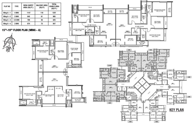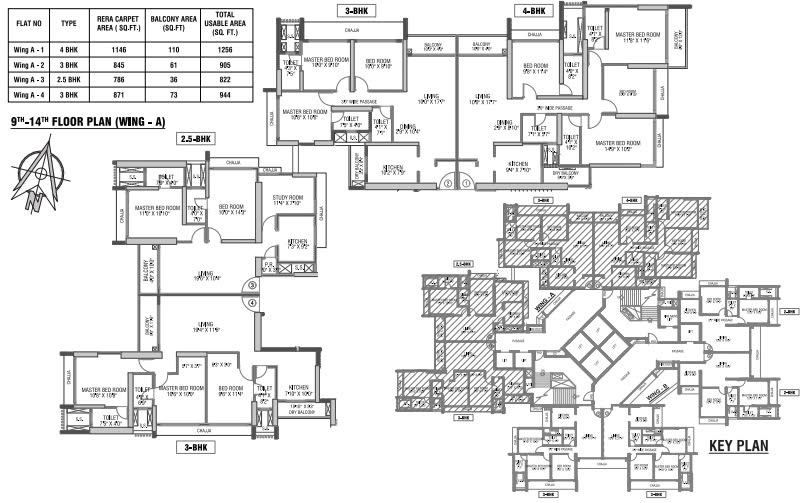 - Spacious 2.5 BHK, 3 BHK, and 4 BHK residences