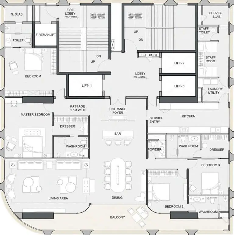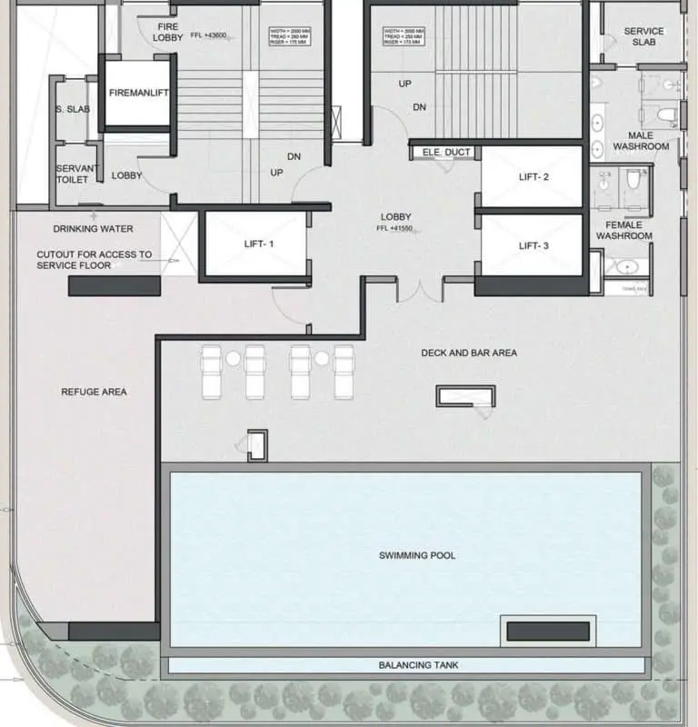 With 12 levels of podium parking and 3 basement levels, residents have ample and secure parking space. The project also features 9 podium levels of parking equipped with advanced car lifts, ensuring smooth and hassle-free parking experiences.