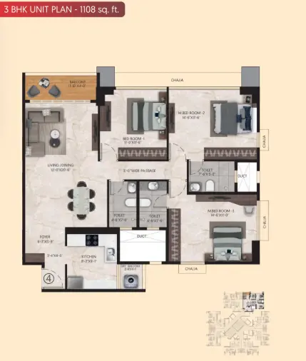 The 3 BHK residences offer larger layouts with expansive living areas, multiple bedrooms, and sit-out balconies. These homes are ideal for families seeking upgraded luxury living.