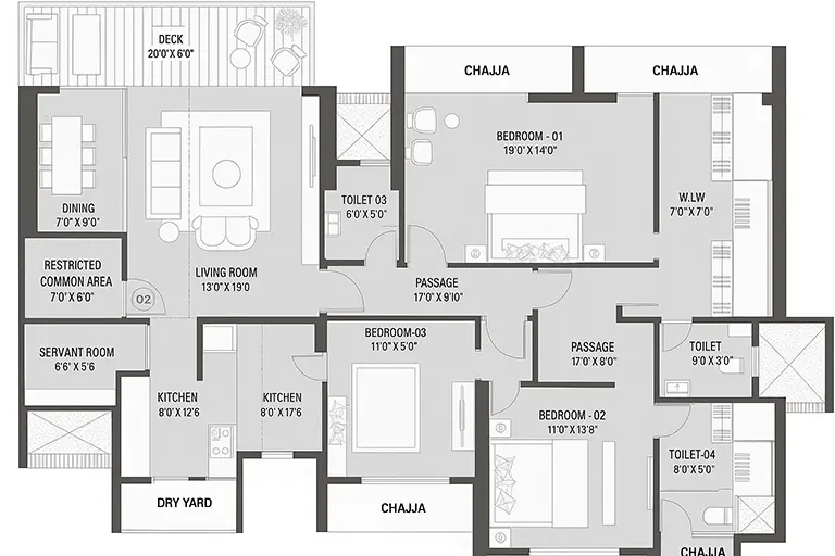 Step into spacious sanctuaries that exude refinement and warmth. Kabra Dvayam offers: