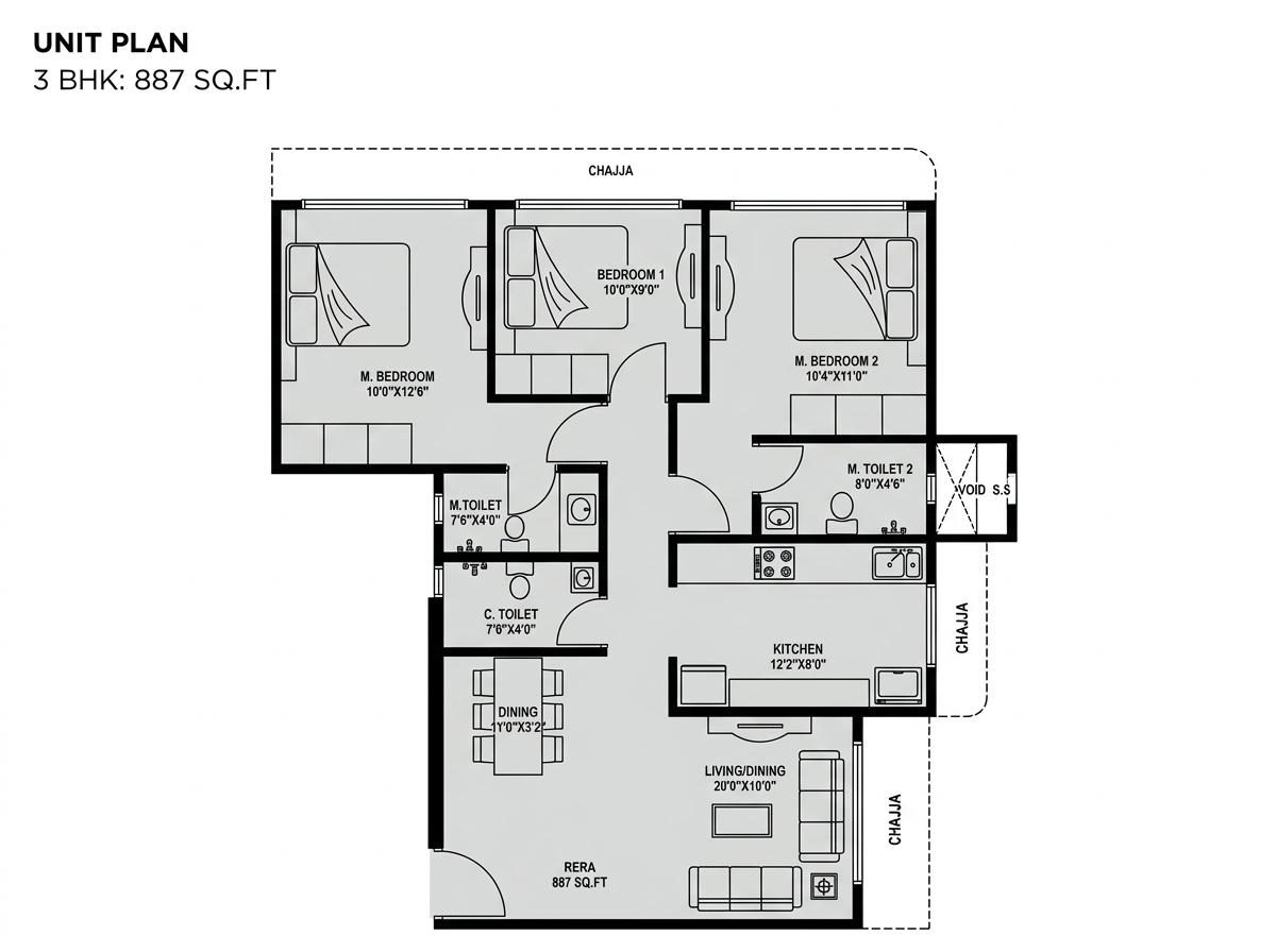 Kabra Garnet offers smartly curated 2 BHK and 3 BHK residences designed around the principle that boutique living should never compromise on space or quality. The 2 BHK apartments are available at 690 sq. ft. of carpet area, priced from ₹1.93 Crores++ — thoughtfully planned homes that eliminate dead space and maximise every usable square foot for modern living. The 3 BHK residences span 887 to 911 sq. ft. of carpet area, priced from ₹2.55 Crores to ₹2.86 Crores++ — generous family homes with well-proportioned bedrooms, functional kitchens, and living areas that deliver genuine comfort in a format that Malad West’s boutique market rarely offers. Smart layouts with maximum space utilisation, good natural light, and strong cross-ventilation define every residence — a philosophy rooted in Kabra Group’s long legacy of building homes that families genuinely love living in.