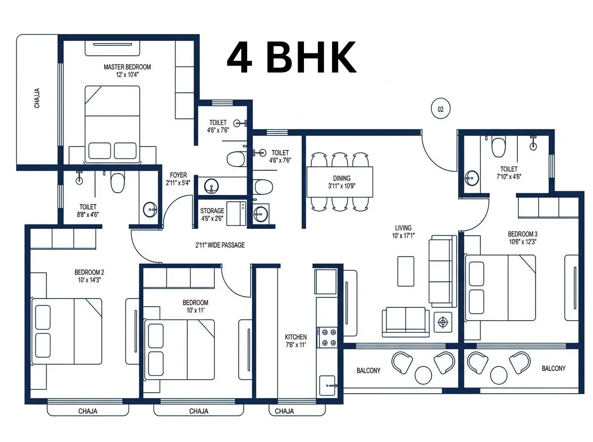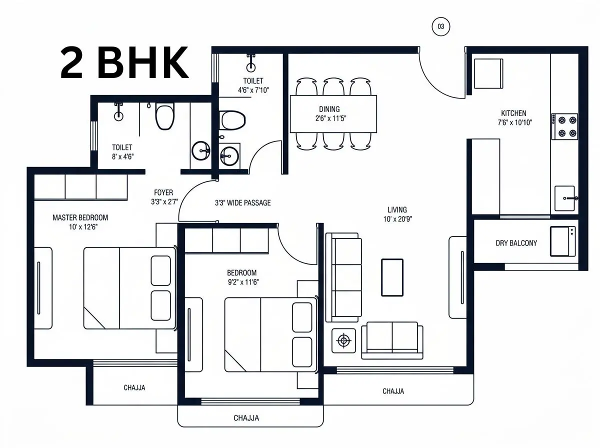 2 & 3 BHK residences with spacious balconies.