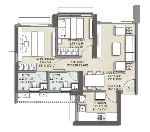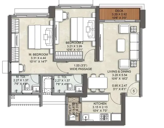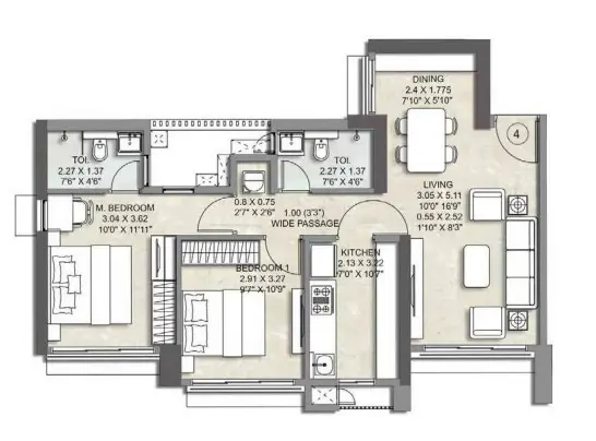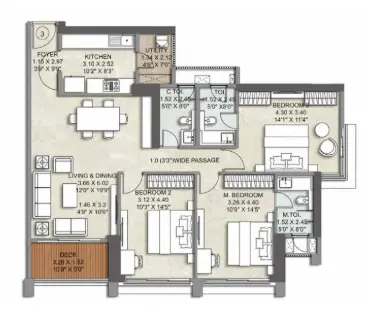 The 2 BHK residences are efficiently planned, featuring clearly defined living and dining areas, well-proportioned bedrooms, functional kitchens, and balconies that enhance light and airflow. These homes are well suited for nuclear families, professionals working across the western suburbs, and investors seeking consistent rental demand.