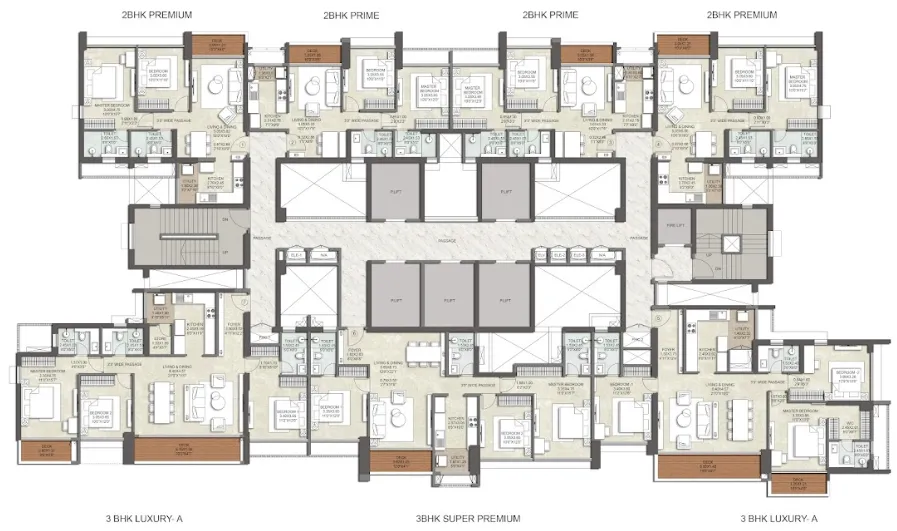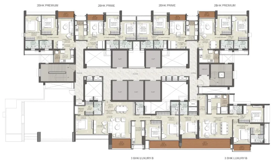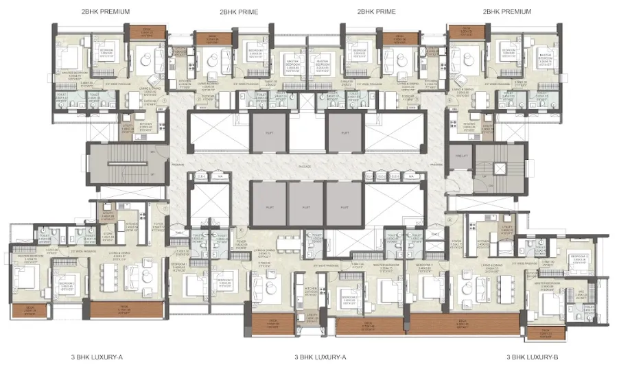 Kalpataru Eternia offers 2 BHK residences with carpet areas from 538 to 790 sq. ft. and 3 BHK residences from 901 to 1,079 sq. ft. — all featuring elegant interiors, expansive sundecks, full-height glazing for panoramic views, and vastu-compliant layouts.