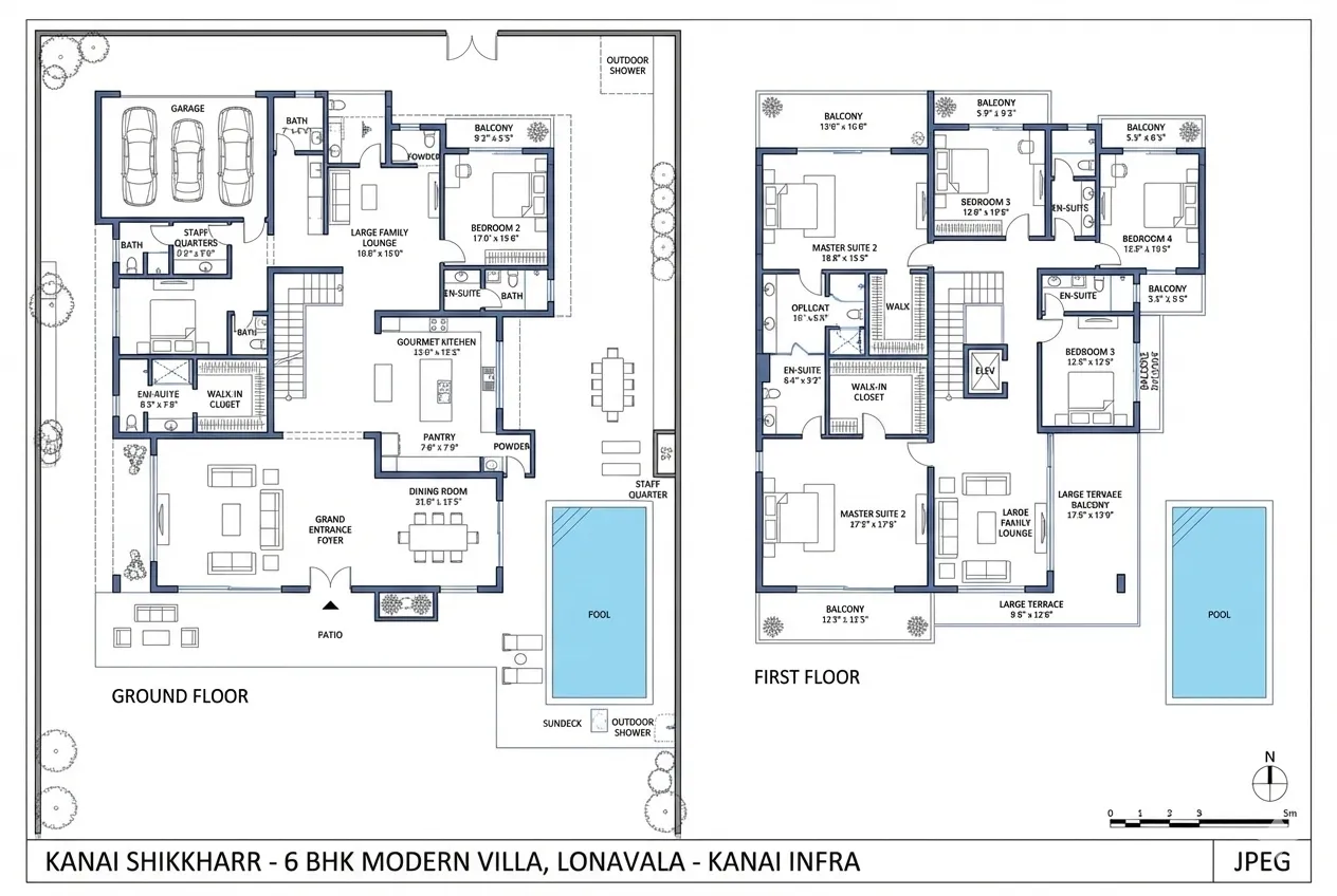 Kanai Shikhar is a boutique development created for a highly discerning clientele. Low-density planning ensures that each villa enjoys unmatched privacy and exclusivity. Discreet service areas, dedicated housekeeping quarters, and private utility zones allow daily operations to remain invisible, preserving the sanctity of personal living spaces.