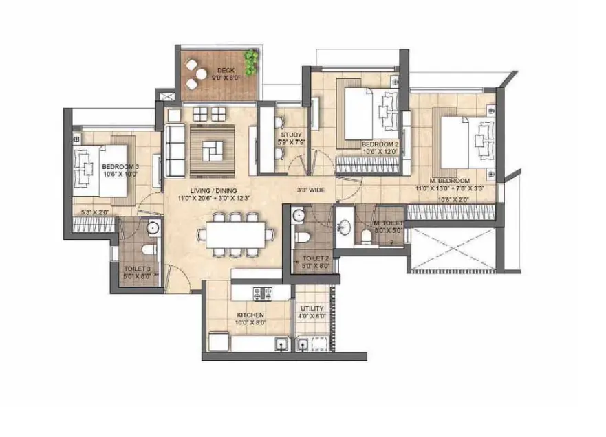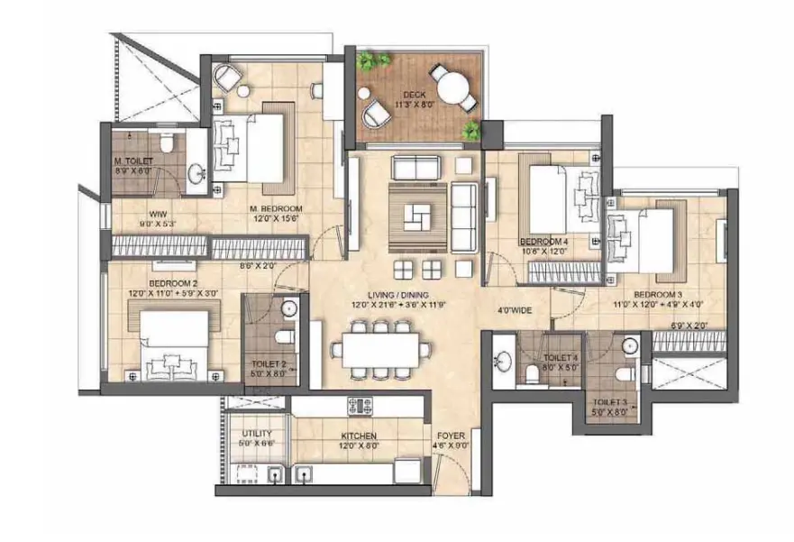 • Large-format 3 BHK residences and 4 BHK residences, which are increasingly rare