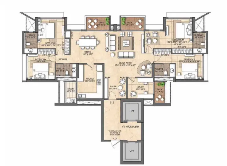 The project is designed as a high-rise development with a strong emphasis on open spaces, landscaped zones, and visual privacy. With a carefully controlled number of residences, it ensures exclusivity, quieter living environments, and a strong sense of community among residents. This limited inventory approach is particularly significant in Mahalaxmi, where new large-format luxury supply is increasingly scarce.