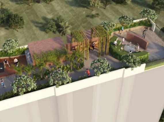 Residents have access to a fully equipped gymnasium, a steam room, and a sauna bath — offering a complete wellness and fitness experience within the building. The terrace floor reveals a truly special amenity level, featuring a multipurpose deck for yoga and wellness, a walking track, a big screen entertainment area, and an open pantry space perfect for intimate gatherings.