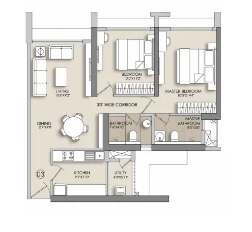 Every tower at Narang Privado is designed with 5 lifts per tower, 10.5 ft floor-to-floor heights, nearly 5-foot-wide private decks, imported marble flooring in living, dining, and bedrooms, and dual-side views in select 3 BHK configurations — ensuring a living experience that is both spatially generous and aesthetically exceptional. MahaRERA No. P51700050065 | Possession: Tower A Dec 2027, Tower B Dec 2026 | IGBC/LEED Gold Pre-Certified