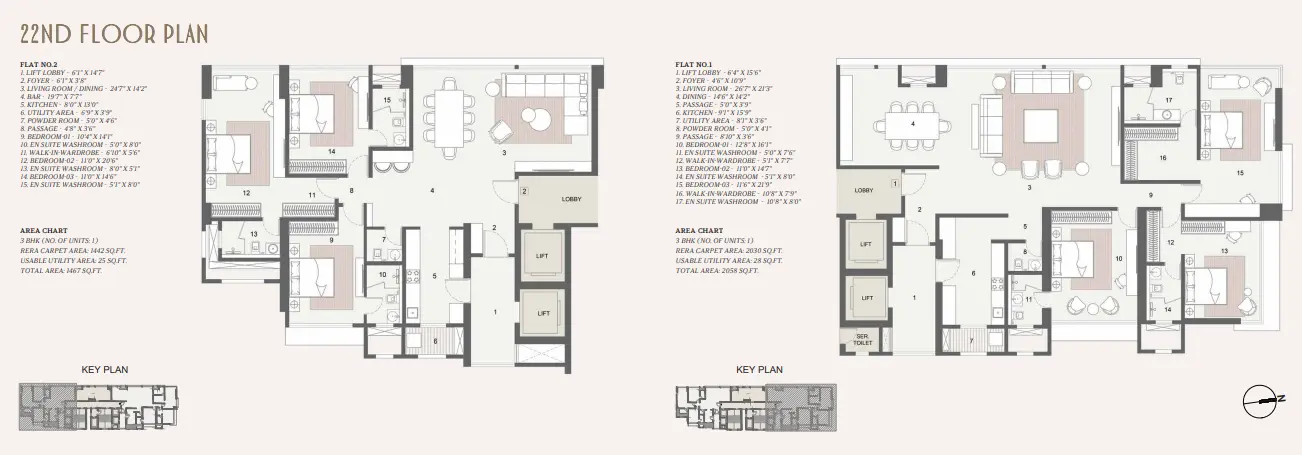 Each 4 BHK home is master-planned to deliver villa-scale living within a vertical sanctuary. Expansive living and dining halls, private bar counters, walk-in wardrobes, utility zones, family lounges, and large en-suite bedrooms create residences that function as refined private estates.