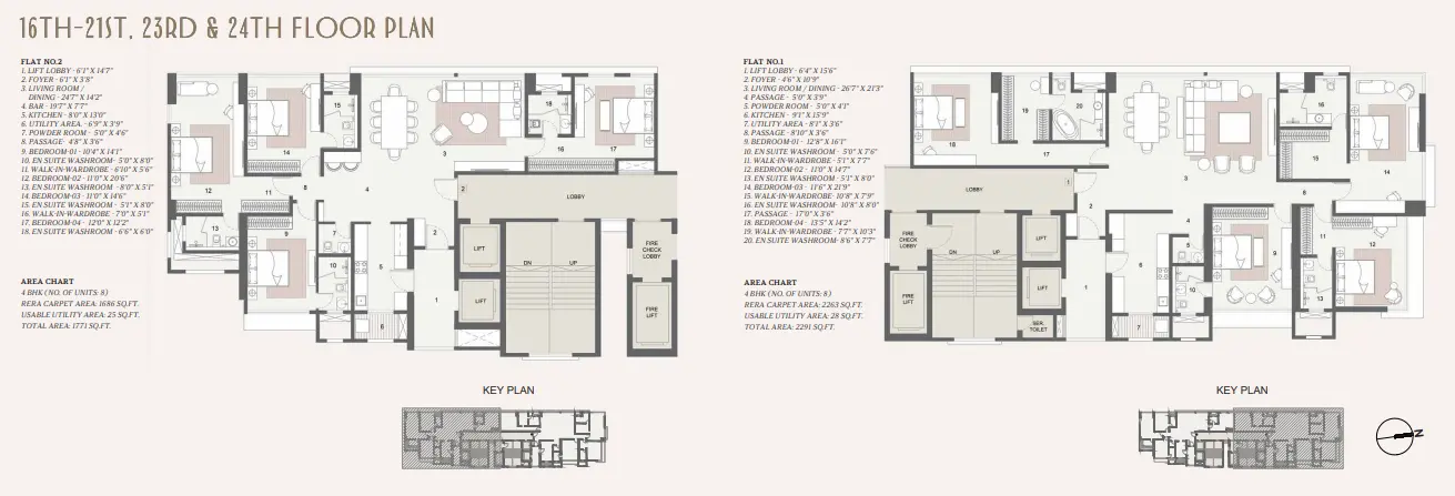 Every 4 BHK residence is serviced by private lift access, ensuring discreet entry, heightened security, and uncompromised privacy—features increasingly sought by high-profile homeowners.