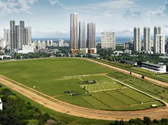 Architecturally, the towers are designed with strong vertical lines and a contemporary façade language that responds to the surrounding Mahalaxmi Racecourse and Arabian Sea. Every residence is oriented to maximize light, ventilation, and open views, ensuring each home feels private yet connected to the city skyline.