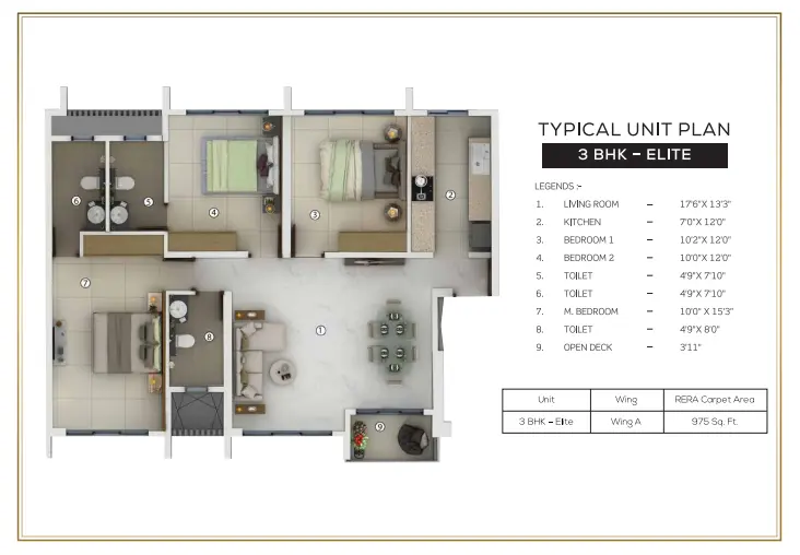 - 3 BHK residences provide enhanced living space, larger balconies, and additional flexibility for home offices or guest rooms.