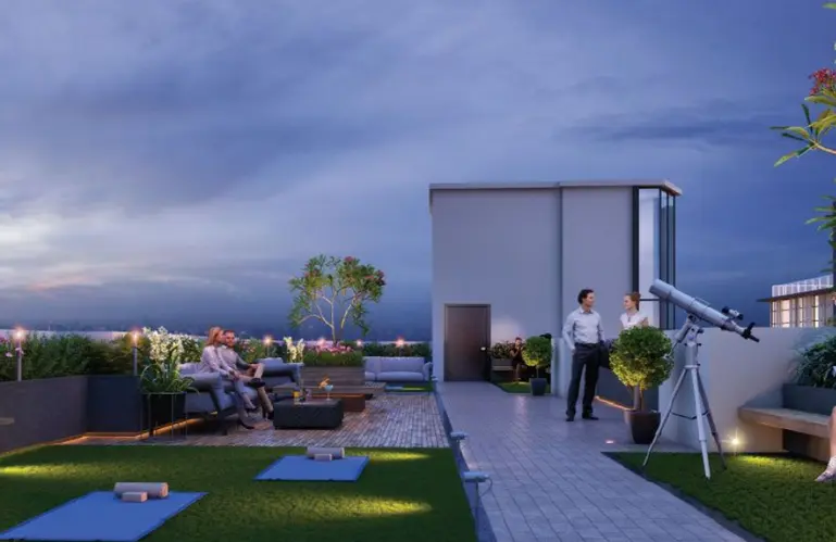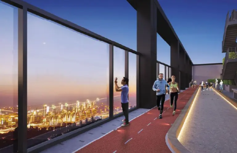 A defining highlight is the signature clubhouse at nearly 200 feet elevation, designed by internationally acclaimed Singapore-based designer Andy Fisher. The podium and rooftop zones integrate wellness, recreation, and social spaces into the everyday living experience.