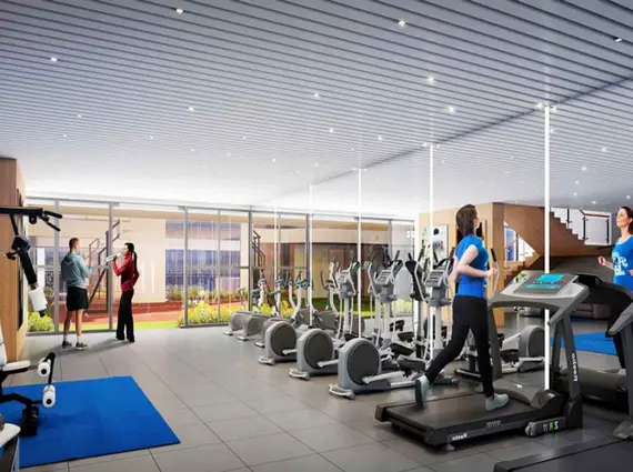 • Two-level gymnasium, yoga room, aerobics studio, squash court, open badminton court, and half-basketball court