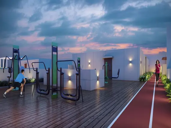 At the rooftop Sky Deck, residents enjoy jogging tracks, sky lounge seating, barbecue pavilion, open-air gym, kids’ play zones, and stargazing decks—creating rare recreational experiences at altitude.