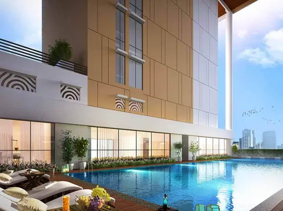 The architectural vision is led by Hafeez Contractor Architects, known for bold urban forms and space-optimised residential planning. The façade adopts a contemporary high-rise expression, while the internal layouts prioritise usable carpet areas, large window spans, and clearly zoned living spaces.