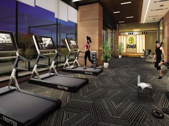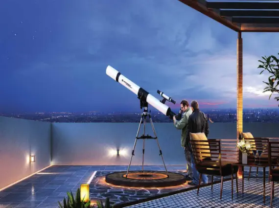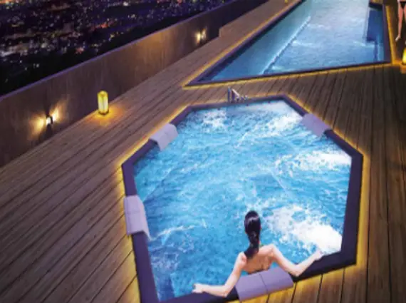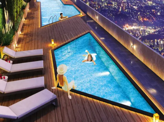 Expansive podium + rooftop amenity zone with 45 curated facilities.