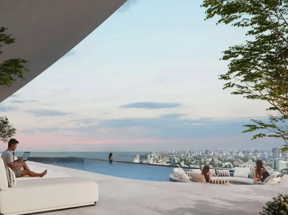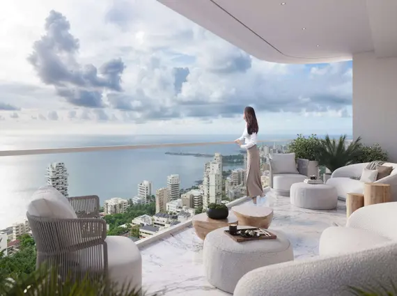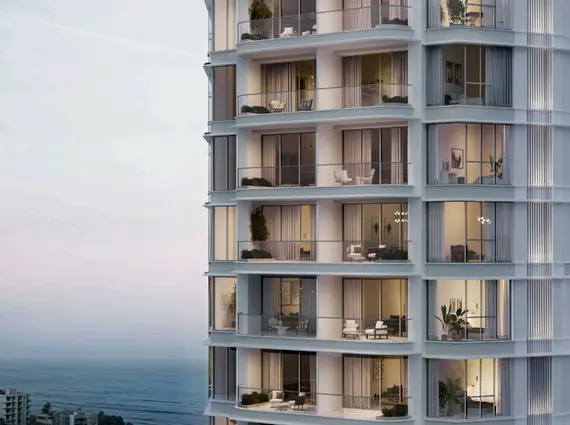 Generous 11’9” floor-to-floor heights and approximately 8.5-foot deep sun decks elevate everyday living, extending interiors toward the sea and sky while preserving visual privacy on all sides. Four high-speed elevators ensure seamless vertical circulation for residents.