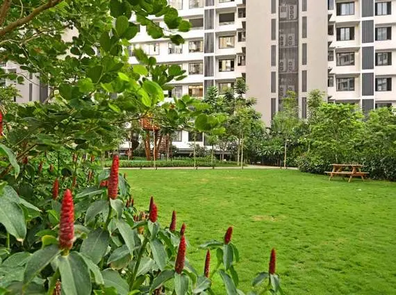 Rustomjee Elements is much more than a collection of apartments. It is built around lush geometry and evocative landscaping — tranquil courtyards, sinuous water bodies, tree-lined pathways, and a 40,000 sq ft themed landscaped podium that elevates everyday living into an immersive experience.