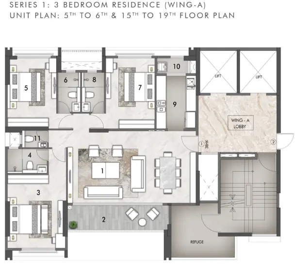 Rustomjee Privé offers two carefully curated 3 BHK luxury apartment configurations, each designed to deliver a palace-like sense of space and comfort. The Expansive 3 BHK residences range from 1,088 sq. ft. to 1,090 sq. ft., while the Palatial 3 BHK homes extend to 1,300 sq. ft. to 1,315 sq. ft. — generous dimensions that are increasingly rare in BKC’s densely developed real estate market.