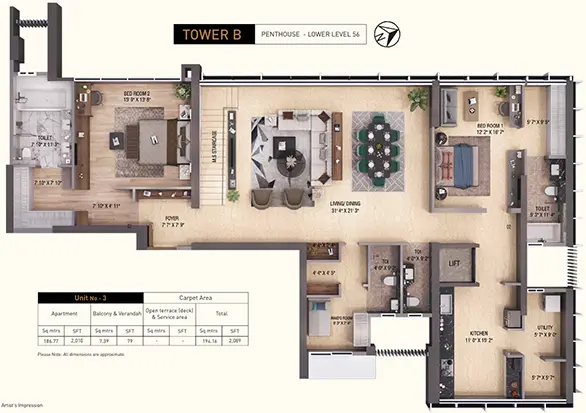 • 5403 (3 BHK – 2,089 sq.ft.) – ₹13.0 Cr