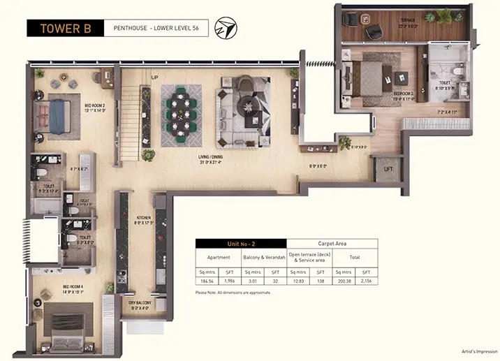 Carpet Areas: 3,750 – 4,624 sq.ft.