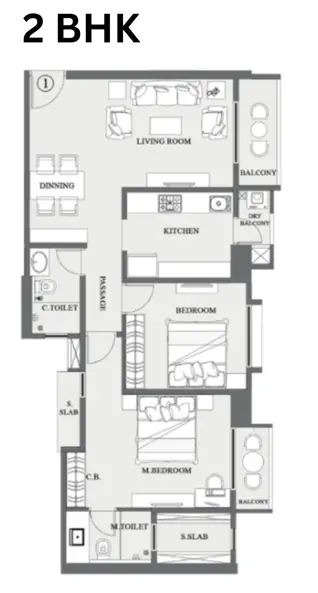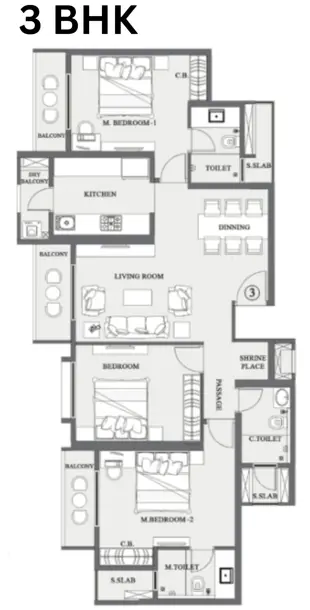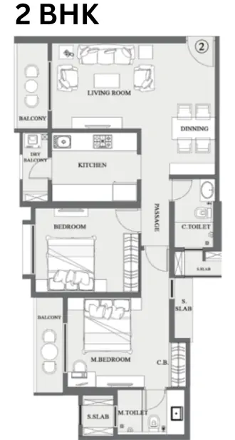 The 3 BHK homes offer expansive layouts with larger living and dining spaces, making them ideal for families seeking upgraded comfort and functionality.