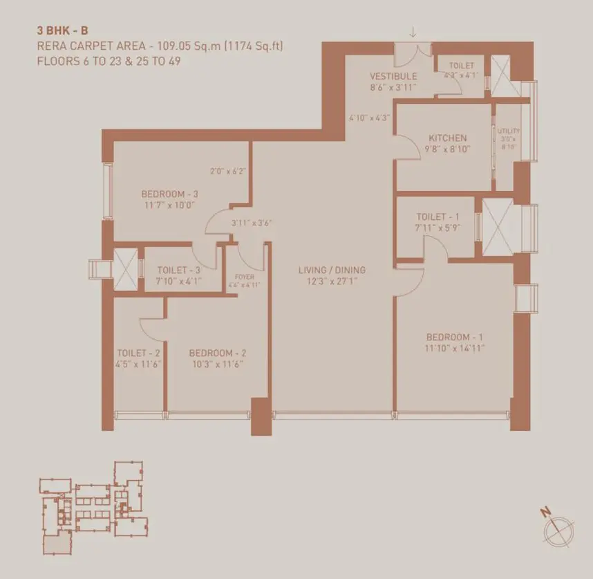 Usable Carpet Area: 3,028 – 3,231 sq.ft.