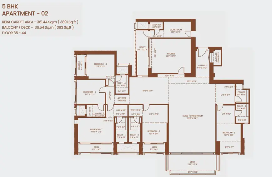 | 5 BHK + Staff | Type B | 3,887 | 400 | 4,287 |
