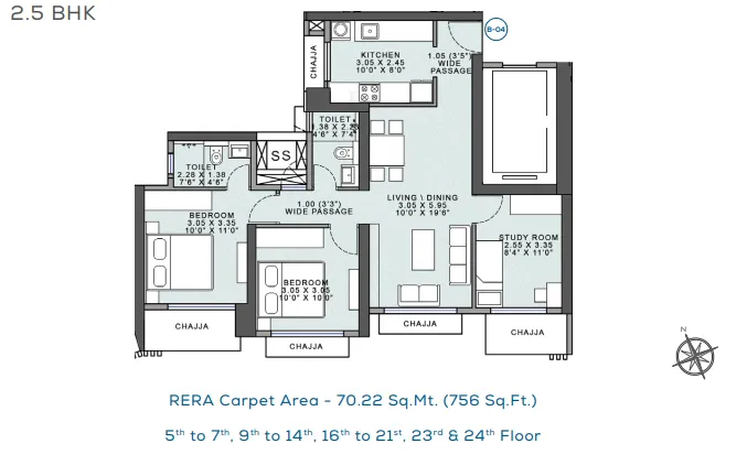 The 2.5 BHK apartments introduce an additional flexible space that can be used as a study, home office, or guest room. This configuration caters to modern lifestyle needs where work-from-home flexibility and multifunctional living spaces have become essential.