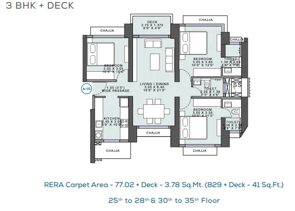 The 3 BHK residences represent the premium offering within the development. These spacious homes provide larger living areas, multiple bedrooms, and well-planned private spaces designed for comfort and privacy.