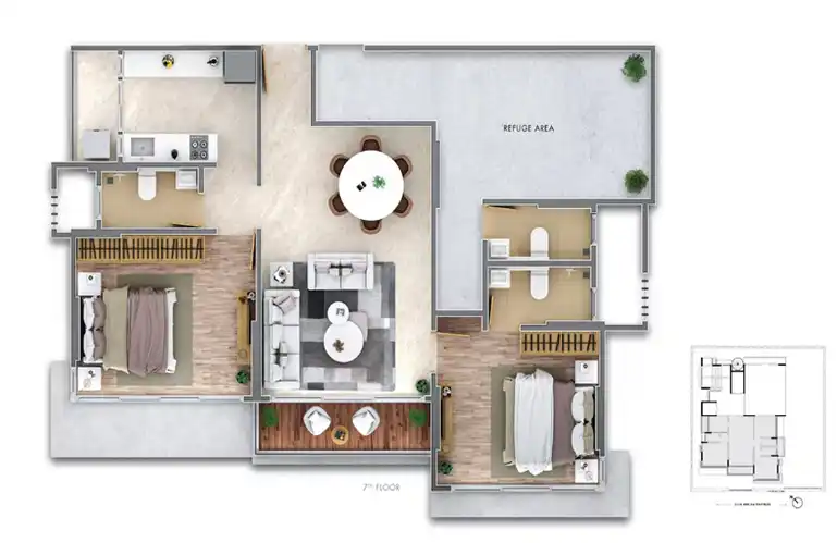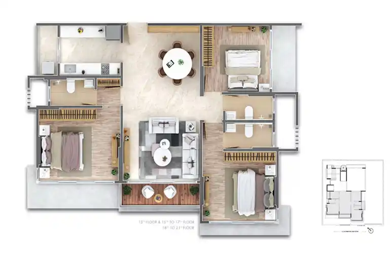 The entire 3 BHK layout has been planned to ensure an ideal balance of